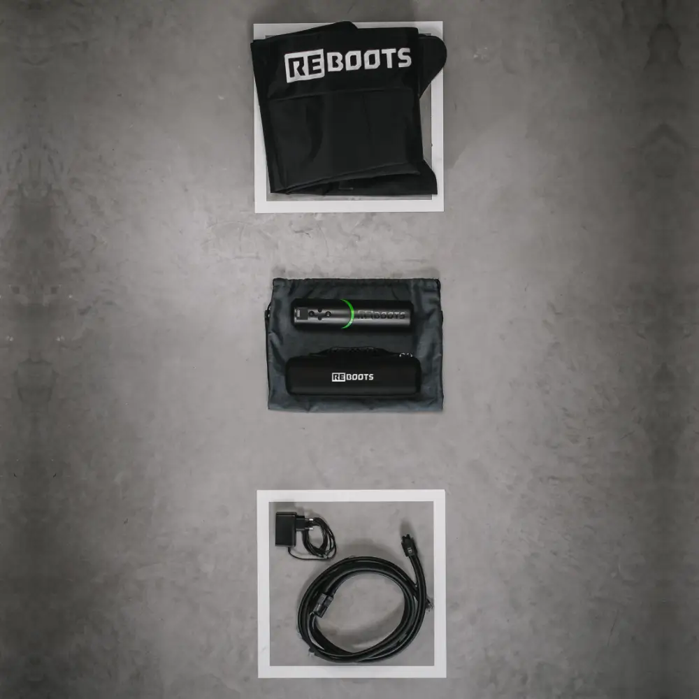 Reboots Go Lite Boots Set: Smarter Einstieg. Volle Flexibilität. Die Recovery Boots massieren deine Beine – vom Fuß bis zur Leiste. Gerät und Boots im Set, inkl. Softcase, Sports Bag, Schlauchset, Zipper-Bags.