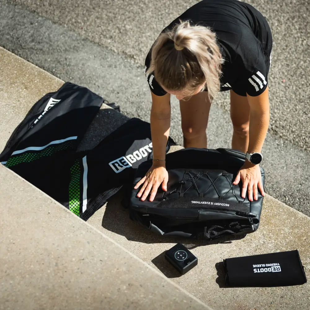 Je mehr Kammern, desto gleichmäßiger und gezielter wird die Kompressionsmassage. Das Go X bietet dir damit die individuellste und effektivste Regeneration innerhalb der Go X Familie. Beim Go X ist außerdem immer unser Reboots Backpack inklusive.